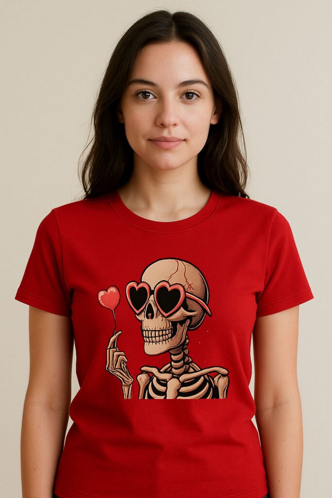 Ieškai originalaus drabužio, kuris išsiskiria stiliumi ir žaismingumu? Šie moteriški marškinėliai su mielo skeleto paveikslėliu – tai tobulas derinys tarp humoro, stiliaus ir komforto!