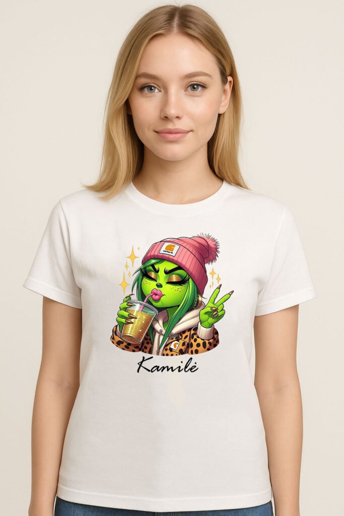 Moteriški marškinėliai su stilingu piešiniu ir vardu. Ieškai išskirtinių, patogių ir stilingų marškinėlių?💚 Šie moteriški marškinėliai, su ryškiu piešiniu – tobula kombinacija mados, komforto ir savitumo. Užrašytas vardas suteikia asmeniškumo ir unikalumo.